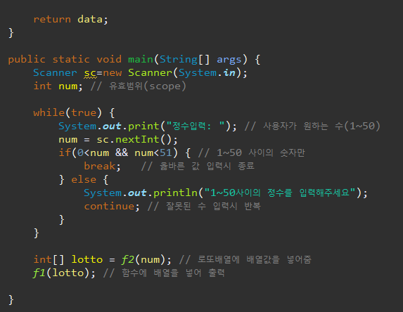 3. 이 랜덤정수들은 1이상 50이하의 정수들로만 구성되어있습니다. 서로 중복되지않습니다.