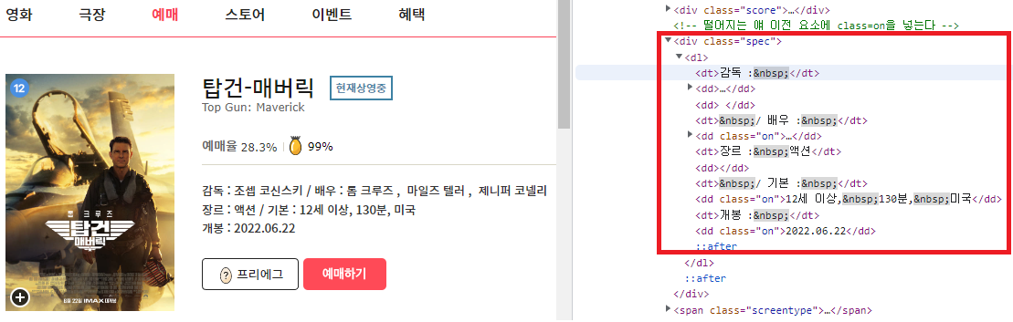 영화 제목의 경우 text() 메서드를 사용해 태그를 제외한 영화 제목만을 정제해준다.