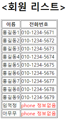 웹 페이지 내에 붉은색 phone 정보없음이 아닌 <font color="red"> phone 정보 없음 </font>가 그대로 출력