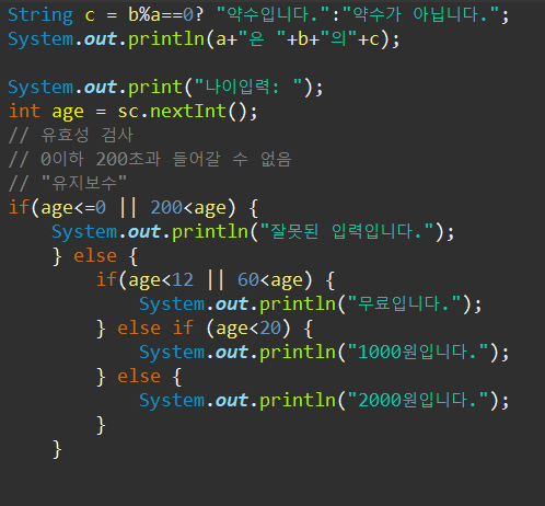 가독성을 위해 붙여주도록 하며, 이후 다양한 조건식을 붙이기 위해 else if 와 else를 사용한다.