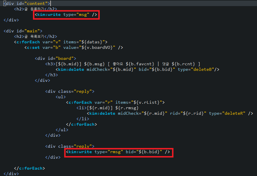 태그를 활용하여 HTML View파트의 코드를 더욱 깔끔하고 유지보수에 용이하게 작성가능하다